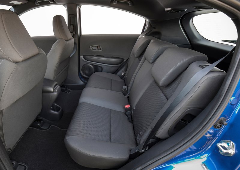 А вот где моему удивлению не было предела, так это задний ряд. Honda H-RV построен на базе микровэна Jazz. Но как конструкторам удалось выжать из этого столько пространства? По сравнению с конкурентами, такими как Toyota CH-R или Nissan Juke, Хонда просто рекордсмен по вместительности заднего ряда. А еще здесь установлены фирменные сиденья Magic Seat. Они умеют менять угол наклона, при складывании подушка сиденья съезжает вперед, и спинка укладывается таким образом, что с полом багажника они организуют совершенно ровный пол. Кроме этого подушку вы можете поднять вертикально и перевозить вещи как будто в дополнительном багажнике – это очень удобно и просто.