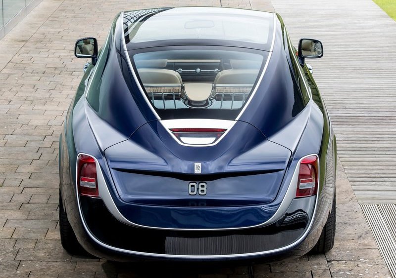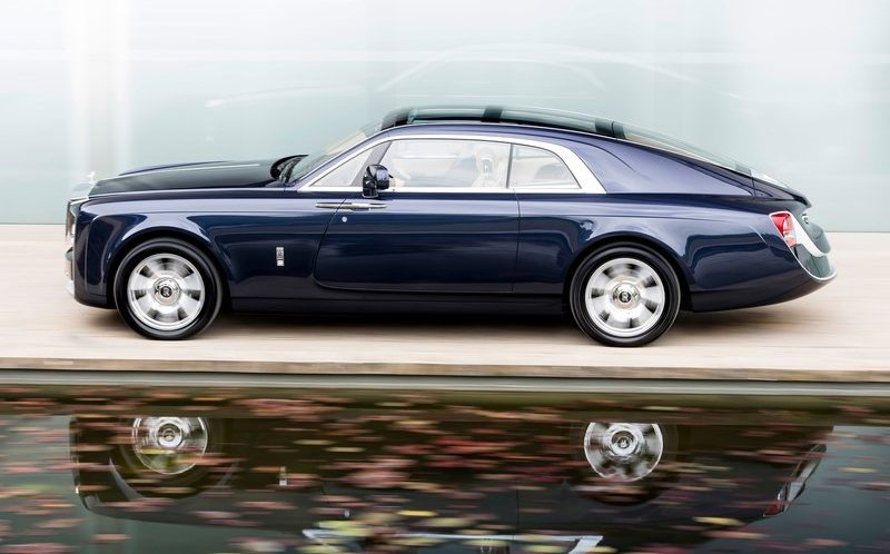 Собранный вручную, в единственном экземпляре Rolls-Royce Sweptail, стоимостью 12,8 млн. долларов удивил мир небывалой роскошью и ценой. Двухместный уникальный автомобиль с холодильником под шампанское, со стеклянным верхом, богато отделан деревом самых дорогих пород.